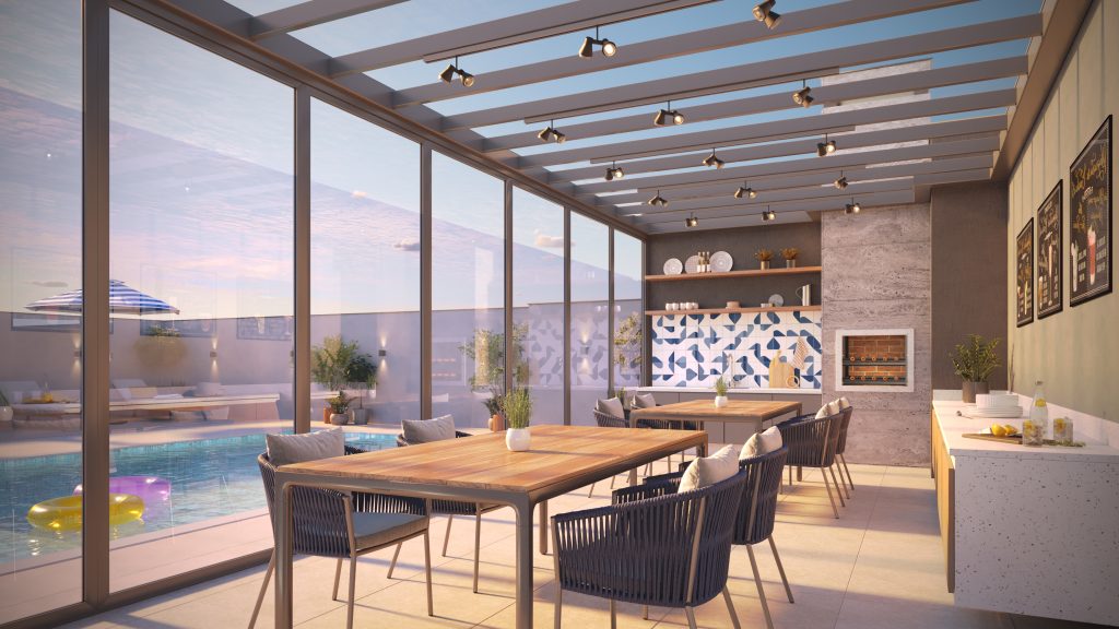 Todas as imagens deste material são meramente ilustrativas e sujeitas a alteração. As unidades não serão entregues decoradas sendo que não fazem parte do contrato os móveis constantes em todas as imagens assim como equipamentos, espelhos, revestimentos, aquecedor, luminárias, objetos de decoração etc. A construtora não fornecerá sistema de exaustão para churrasqueira sendo proibido o uso de equipamentos a carvão. As áreas comuns não serão entregues mobiliadas, decoradas e equipadas sendo de responsabilidade do condomínio a aquisição de mobílias, objetos, espelhos, revestimentos, aquecedor, luminárias, objetos de decoração etc. As unidades e as áreas comuns serão entregues conforme memorial descritivo.